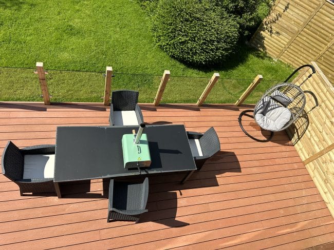 - Large enclosed terrace with private Hot Tub, Charcoal BBQ and patio dining furniture.