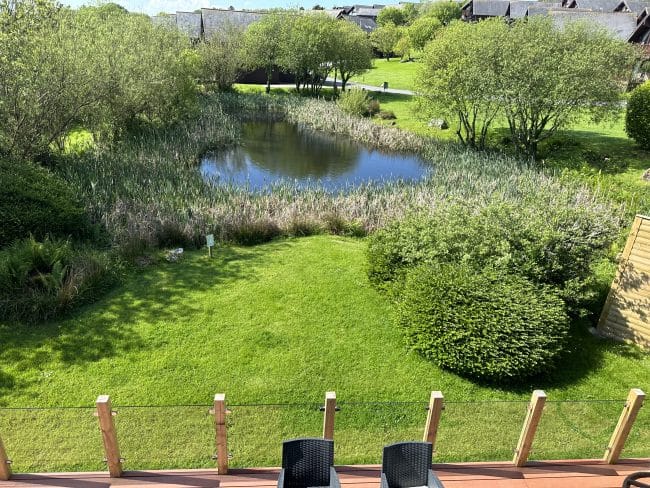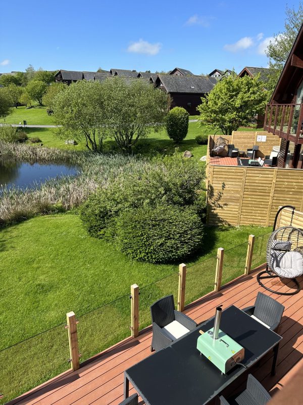 The lodge is lovely, beautifully furnished inside with everything you need. The bedrooms are large and having the two lounges is a real bonus, the upstairs lounge is huge. Lovely quiet location overlooking a small pond and the resort has everything you need for a family holiday.